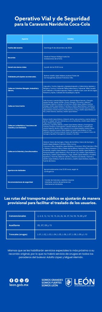 León.- La Caravana Navideña Coca Cola está de regreso para llenar de magia y espíritu navideño las calles de nuestra ciudad, este domingo 8 de diciembre, a partir de las 7 de la noche.