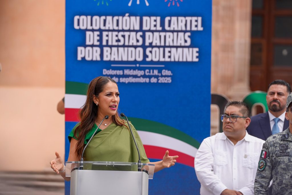 Dolores Hidalgo, Gto.- En Dolores Hidalgo se llevó a cabo la colocación del Cartel de las Fiestas Patrias por Bando Solemne. Durante la ceremonia, la gobernadora Libia Dennise García Muñoz Ledo destacó que estas celebraciones son una oportunidad para reflexionar sobre el valor de la libertad y recordar el inicio del movimiento de Independencia en esta ciudad.