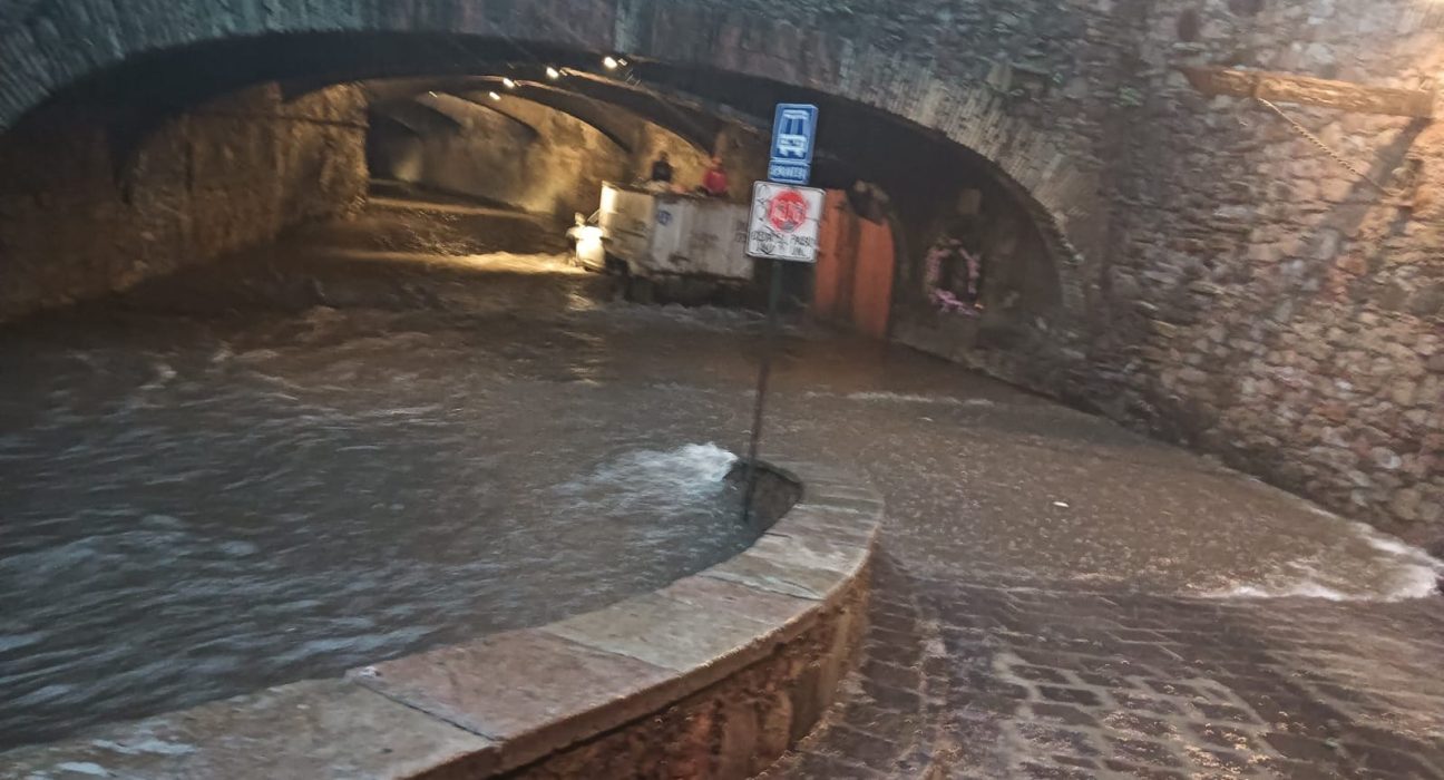 Asimismo –al igual que sucede cada vez que llueve muy fuerte- la calle subterránea Miguel Hidalgo temporalmente se convirtió en arroyo y gran cantidad de callejones en efímeras cascadas.