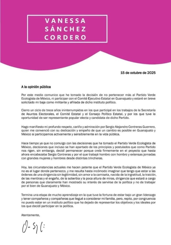 Desde semanas atrás se rumoraba esto, que había un desacuerdo en que la dirigencia nacional nombrara a Virginia Magaña como nueva secretaria general del partido del tucán en Guanajuato y ella misma terminó por confirmarlo.